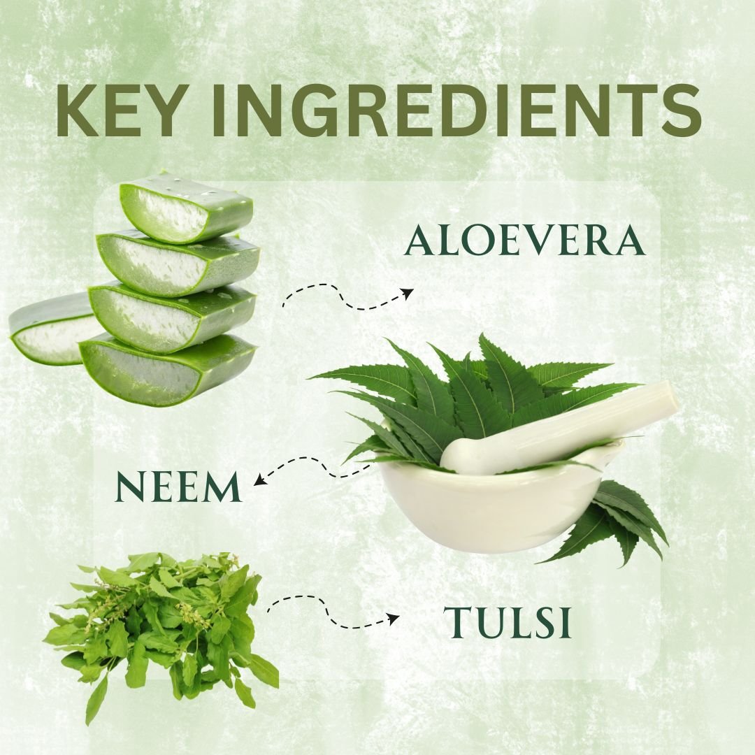 • Ayurvedic Herbal Formula with Aloe Vera, Neem & Tulsi.